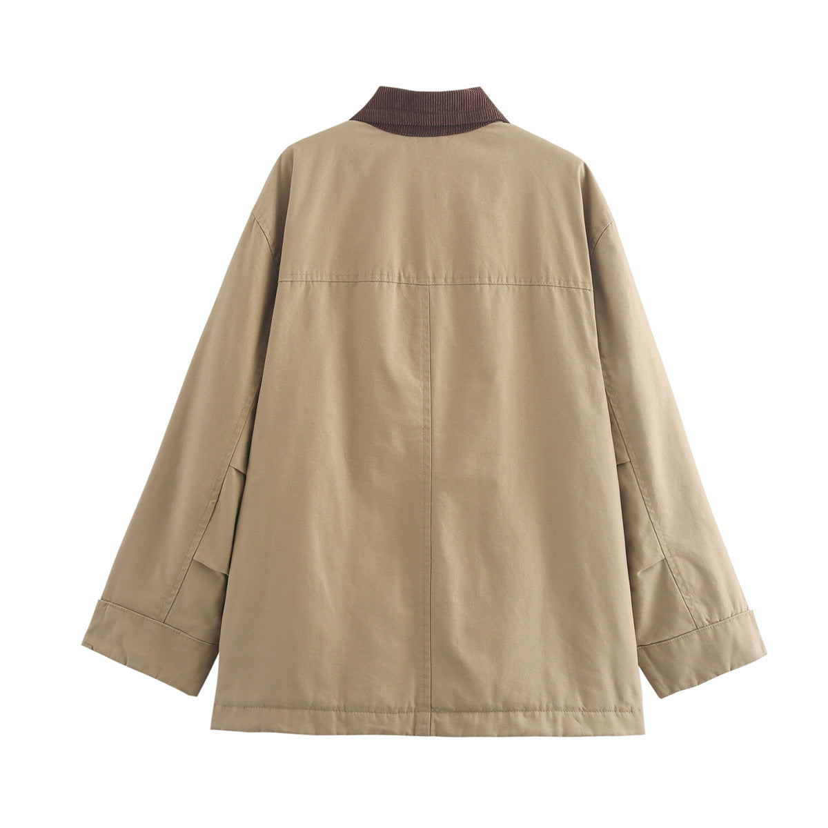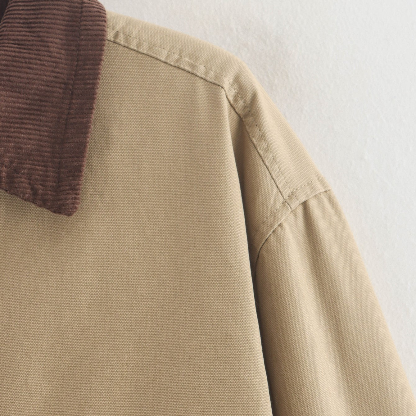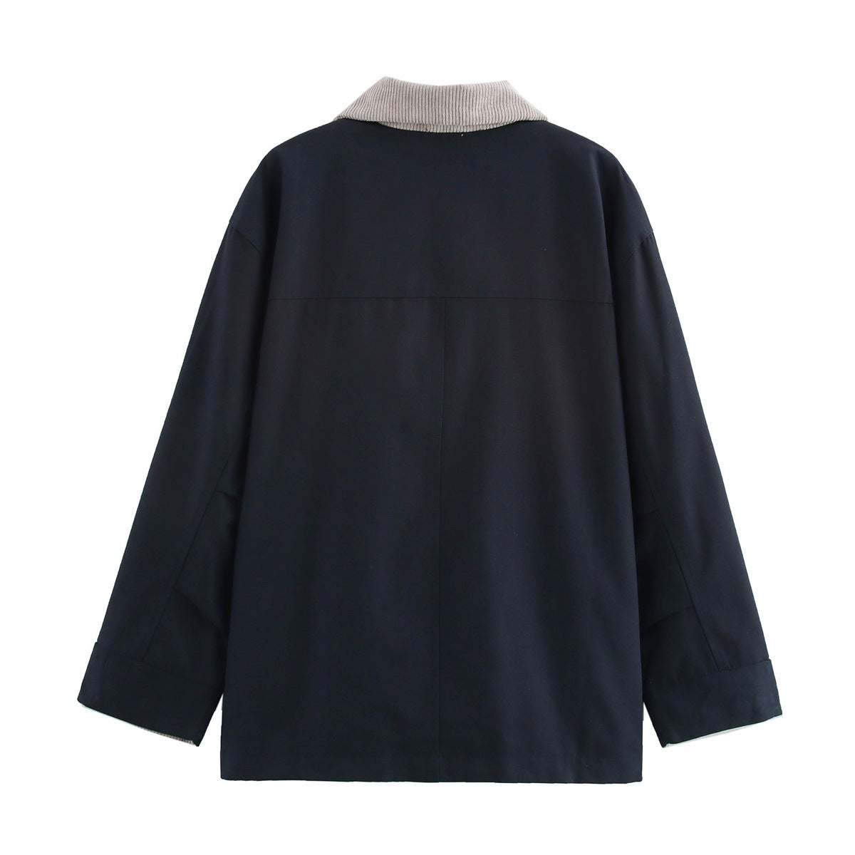 Crafted in durable canvas with a contrast corduroy collar, this jacket brings refined utility to cooler days. Its relaxed silhouette balances structure and comfort with understated ease.