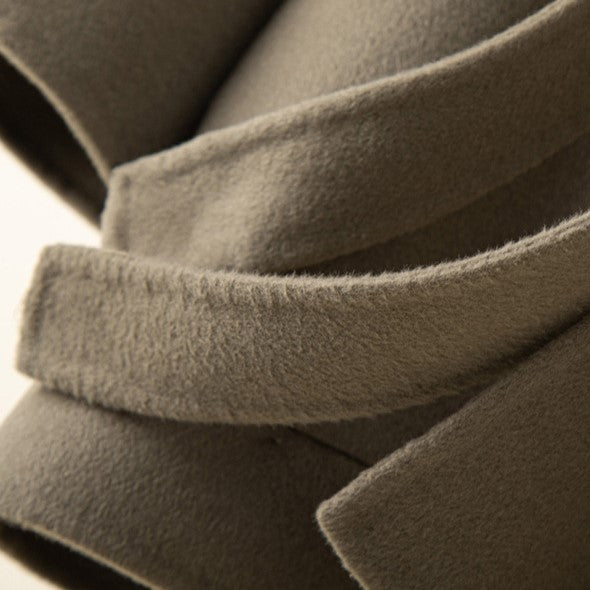 Crafted from pure wool with a soft hand feel, this belted silhouette defines quiet confidence. Its sculpted form and doll-collar detail lend timeless structure to cold-season dressing.