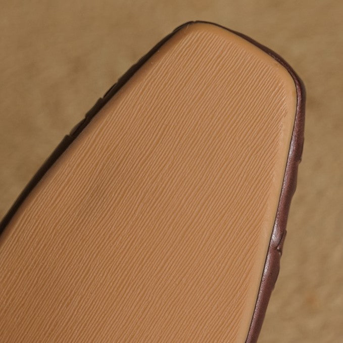 A refined woven front sits against smooth, full-grain leather for a quiet interplay of texture. The backless silhouette gives it a clean, architectural ease.
