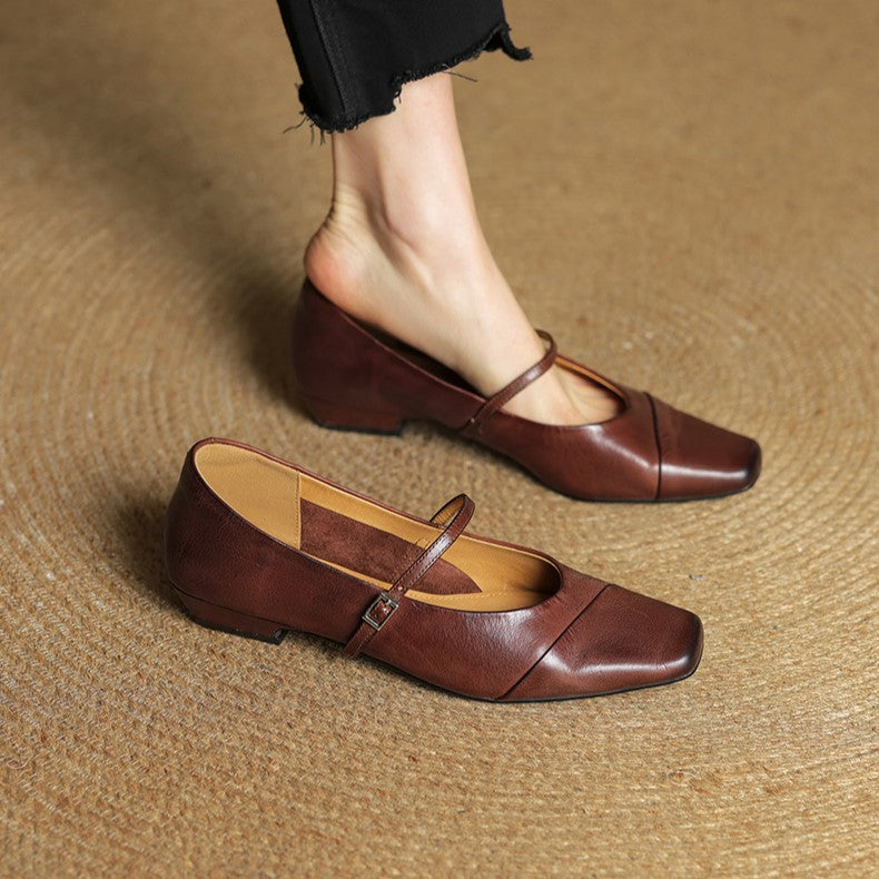 Crafted from premium genuine leather, these square-toe Mary Janes reinterpret a French classic with minimalist precision. A subtle strap and low heel lend elegance for everyday wear.