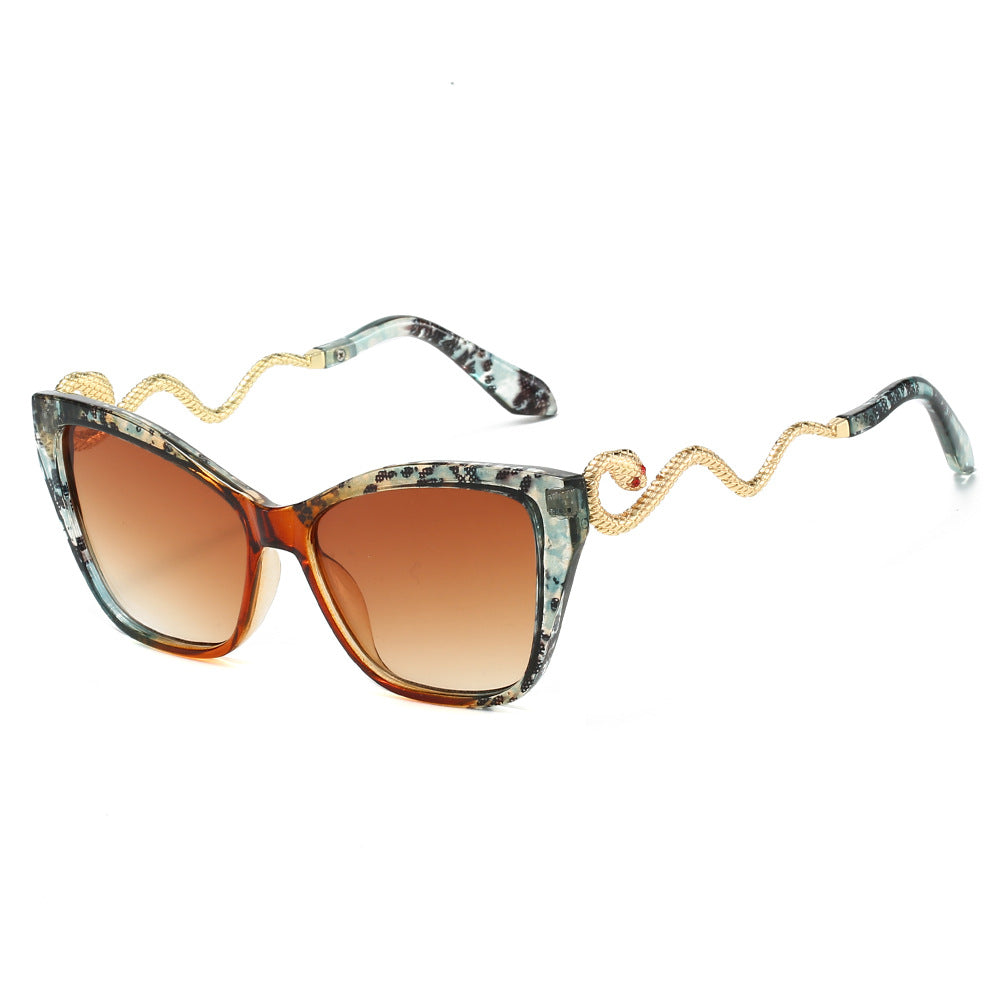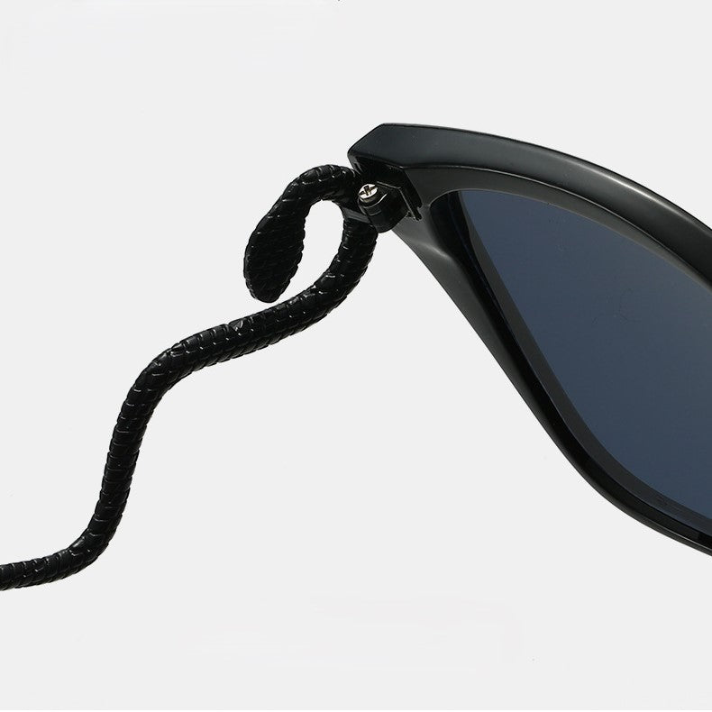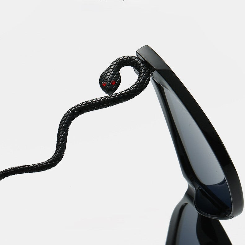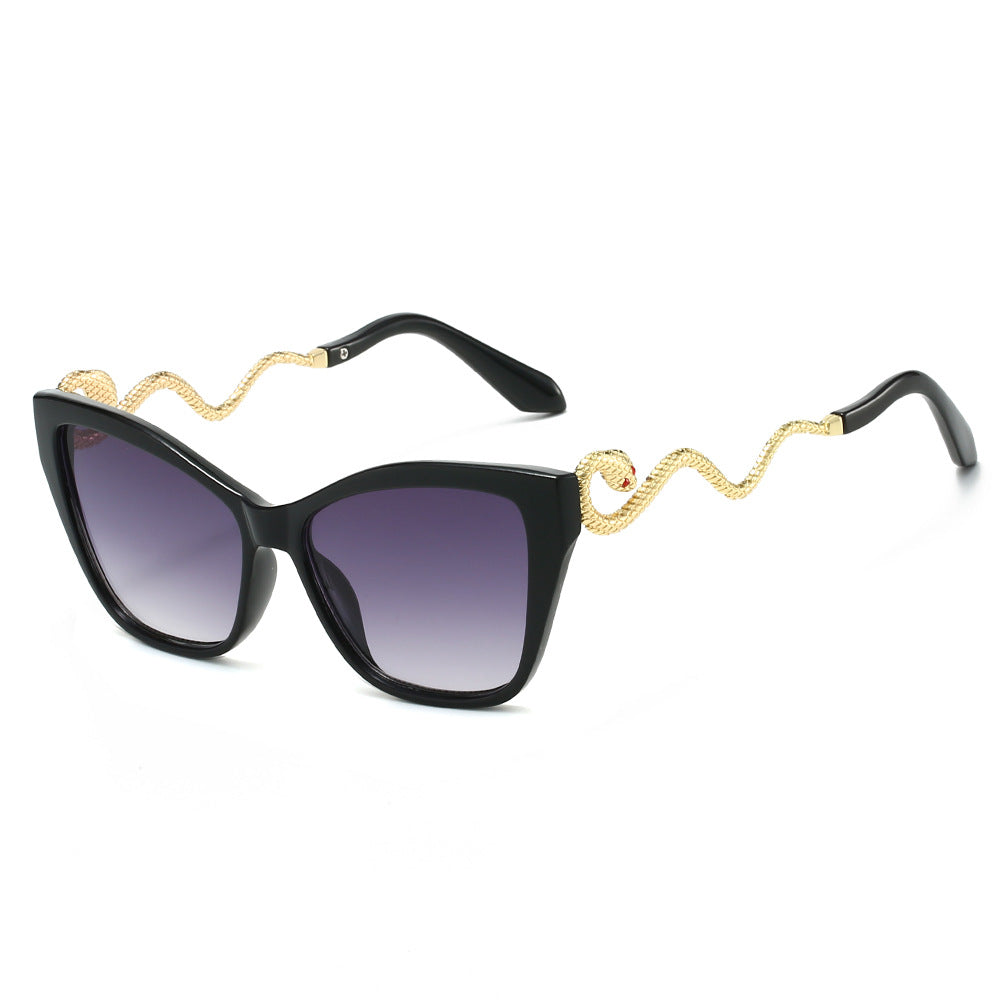 A daring curve in motion. The snake-temple frame turns a simple cat-eye into a quiet statement of power.