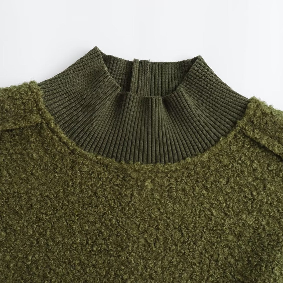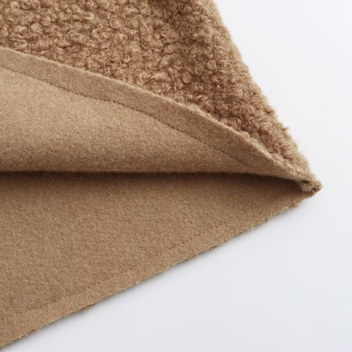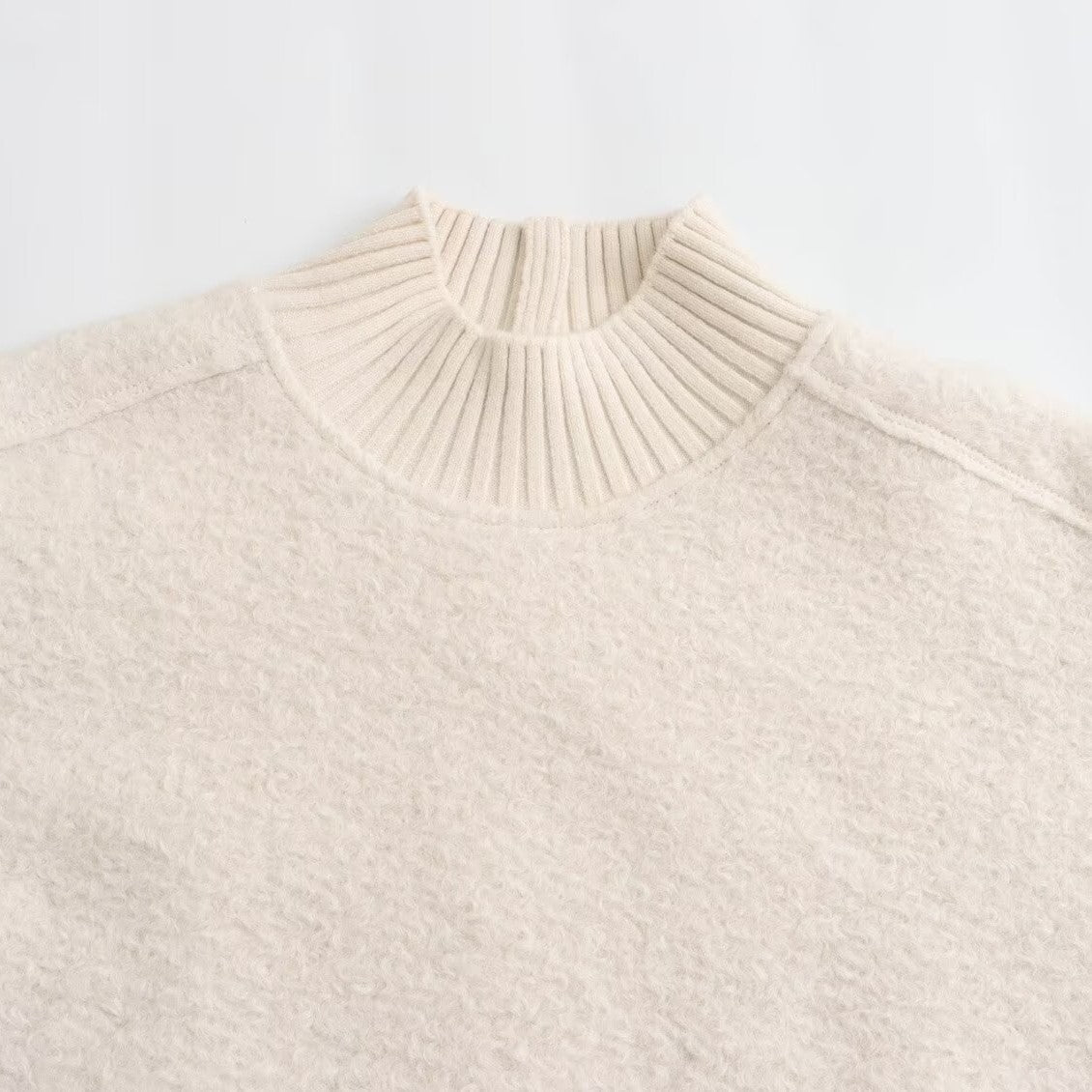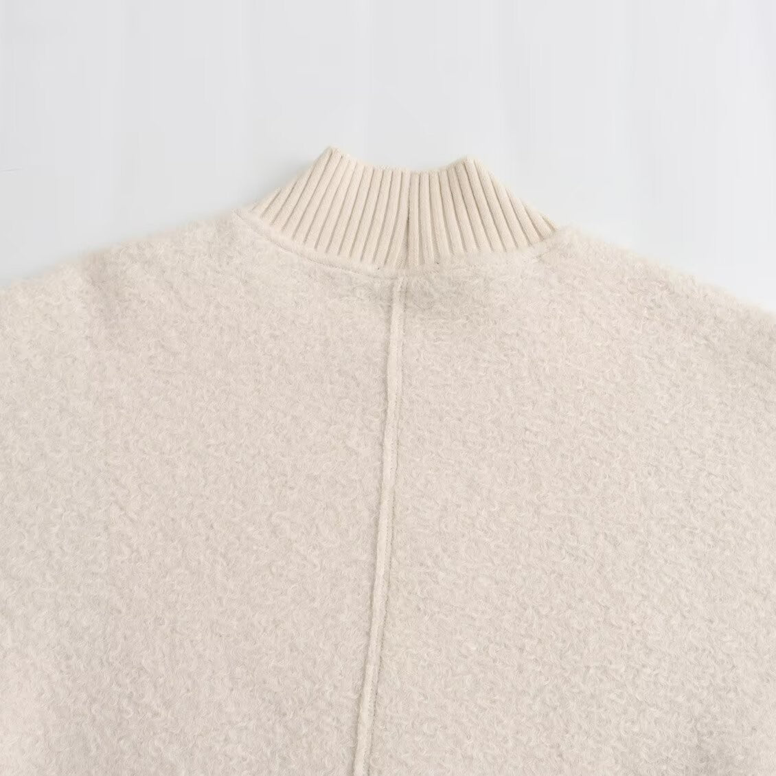Material: Bouclé knit (polyester blend with cotton) Fit: Relaxed, wide cut — women’s sizing Best For: Autumn–Winter layering, casual streetwear, cozy daily wear Care: Hand wash cold, lay flat to dry